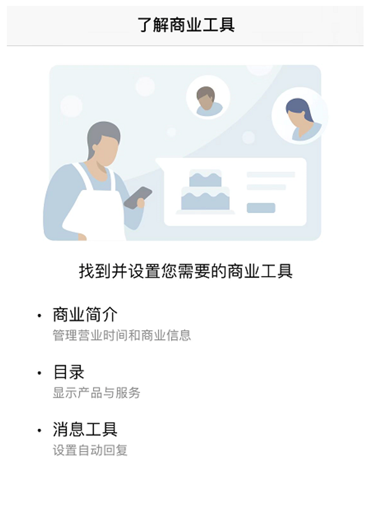 你不仅能设置自己的企业介绍,还可以把产品目录放上去,甚至在你忙不过来的时候,可以设置自动回复,这也是选择商业版的最大原因。